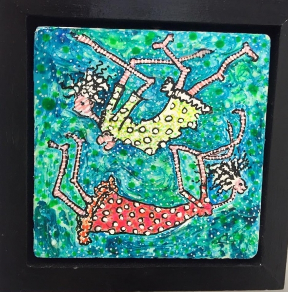 ink/acrylic on canvas, 19″x19″, white frame.